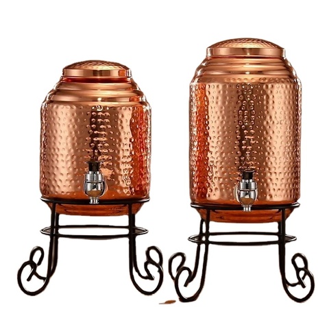 Dispensador de agua martillado de cobre puro 100%, con soporte, (en 3000ml, 5000ml de capacidad), grifo de acero inoxidable y pureza Ayurvic